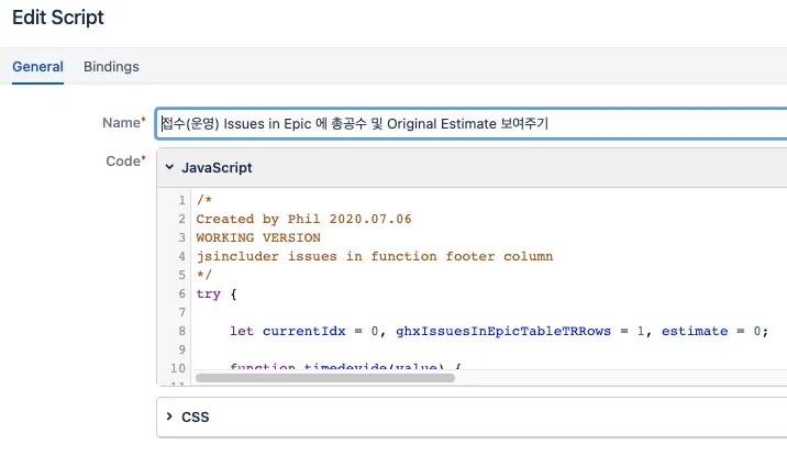 AJS.$(actions2).after('<tfoot><tr class="issuerow"><td></td><td></td><td></td><td></td><td>์ด๊ณต์</td><td>' + +(estimate / 160).toFixed(4) + '</td><td>Sum</td><td>' + timedevide(estimate).w + "Week " + timedevide(estimate).d + "Day " + timedevide(estimate).h + "Hour " + '</td><td></td></tr></tfoot>');