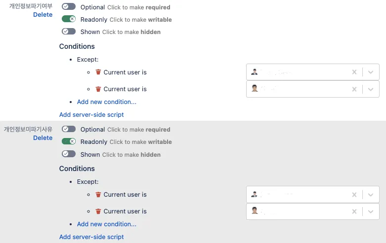 ์ฌ์ฉ์์ ํน์ฑ, ํ๋ก์ ํธ ๋ณ, ํ๋ ์กฐ๊ฑด์ ๋ง๊ฒ, ์ง๋ผ๋ด์์ ์์ ๋๋ ๋ณผ ์ ์๋๋ก ์ธ์ธํ ์กฐ์ ๊ฐ๋ฅ